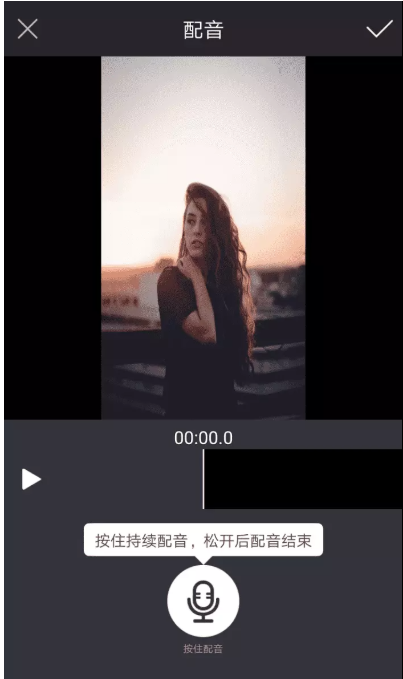 5、选好之后,直接点击该素材进行添加,如果你想为视频配音,可以点击下方【配音】按钮,根据提示操作,
