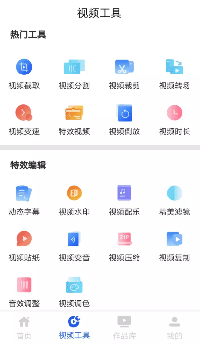 1、先在手机中打开清爽视频编辑器,进入首页,如图,这里有很多功能,
