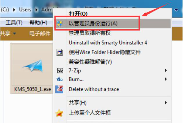 2、然后,解压完成,会得到小马激活工具的应用程序。用户右键单击该程序,在菜单中点击“以管理员身份运行”。