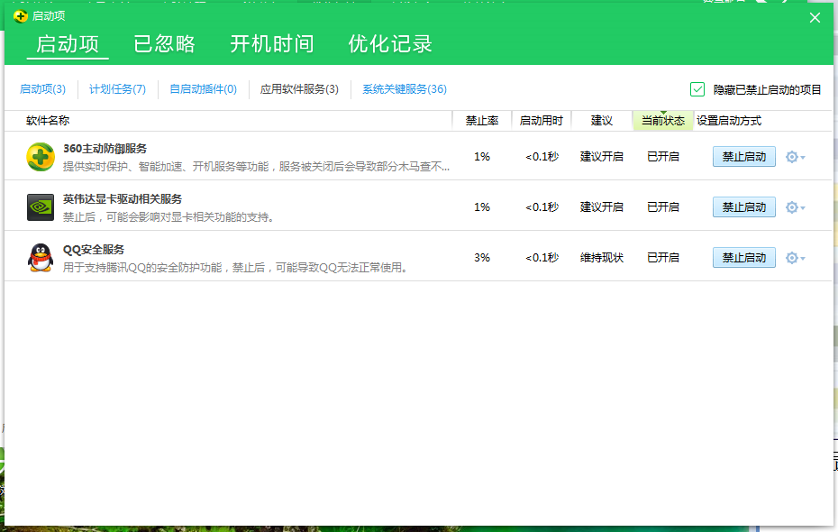 4、如无法找到“Flash Helper Services(flash助手服务)”或“Flash Player更新辅助服务”,请注意将“隐藏已禁止启动的项目”勾选掉。