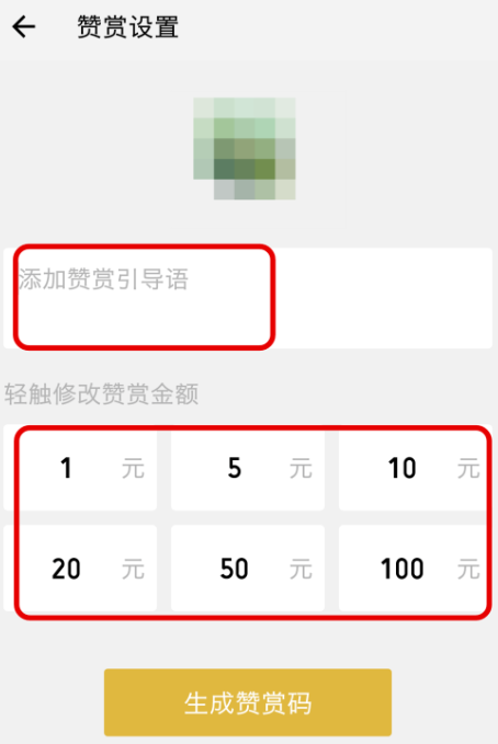 现在进入赞赏设置界面,如图,点击【添加赞赏引导语】,输入文字,然后设置赞赏金额,