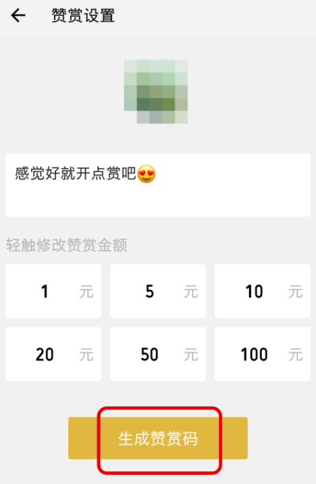 赞赏码二维码效果如图,别人通过扫码付款即可进行打赏,你也可以点击【保存赞赏码】,将其保存并打印张贴,非常方便。
