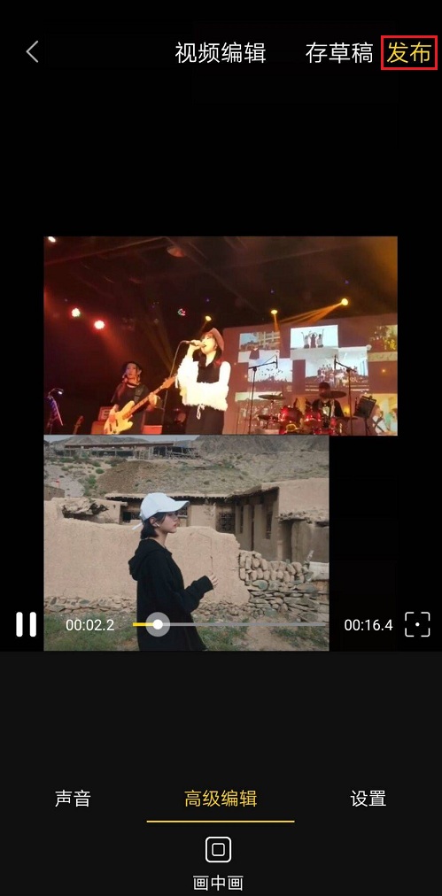 视频添加成功,现在进入视频编辑窗口,点击下方【高级编辑】——【画中画】,