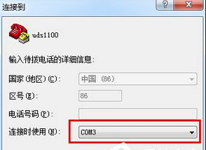 4、弹出“连接到”窗口,“连接时使用”选择COM3。
