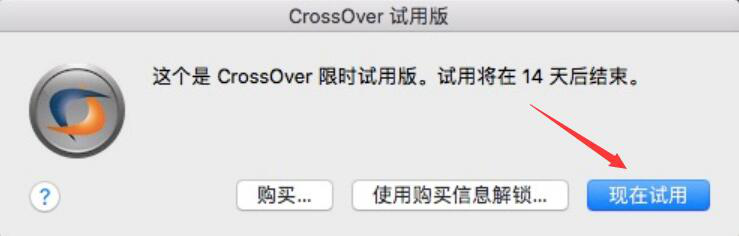 4、接下来,在crossover试用版窗口中,点击“现在试用”的按钮。