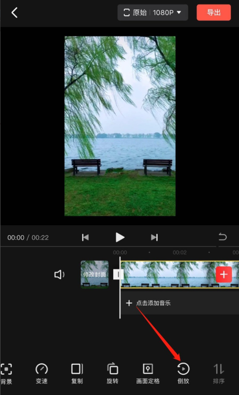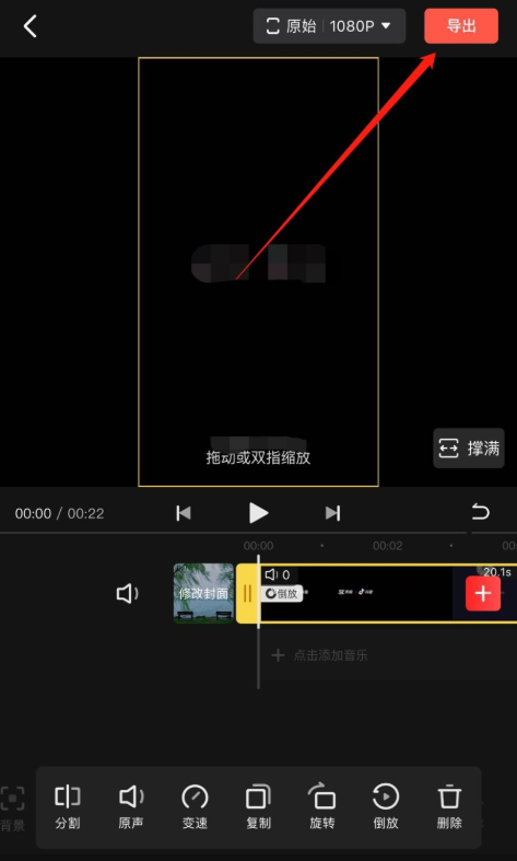 成功为视频添加倒放效果,最后点击右上角的【导出】,即可导出保存视频。