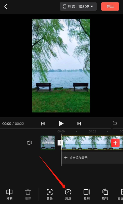 视频添加成功,进入剪辑窗口,如图,在底部工具栏中点击【变速】功能,