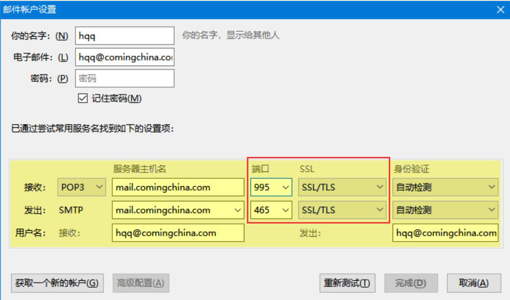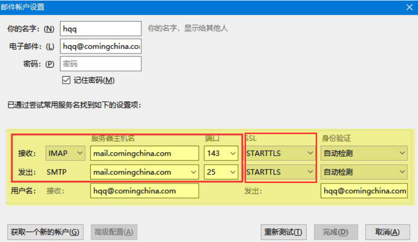 mozilla thunderbird雷鸟客户端在设置的过程中,如果是使用内网的话,一定要手动配置服务器的IP、端口、SSL类型。此外,mozilla thunder