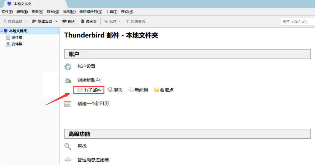 1、首先,用户打开mozilla thunderbird雷鸟客户端,点击创建新账户中的“电子邮件”。