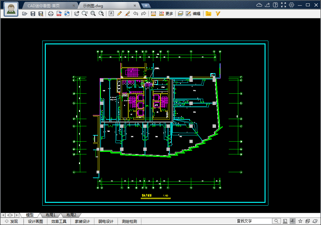 1、打开CAD迷你看图软件并导入任意图纸,为方便操作,我们就以示例图为例说明,