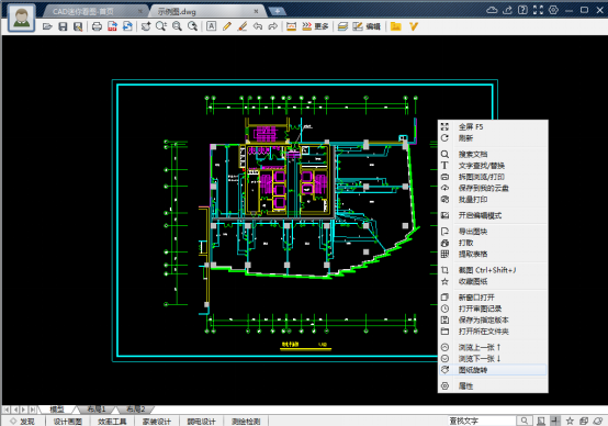 以上就是关于使用CAD迷你看图软件旋转图纸的介绍。当然,除了图纸旋转,在右键下拉菜单中还有【全屏F5】、【搜索文档】、【截图】等实用功能,大家可以自行摸索!