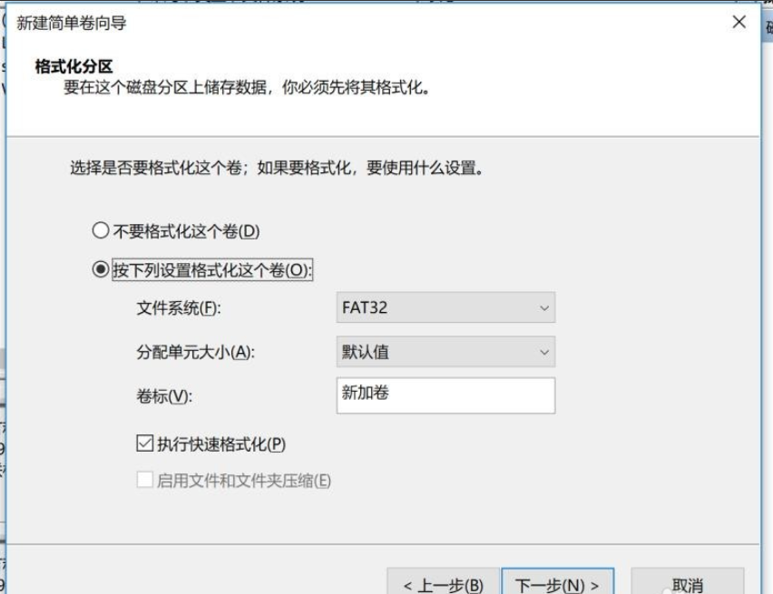 10、格式化分区,勾选【按下列设置格式化这个卷】,按照图中设置即可,进行下一步,