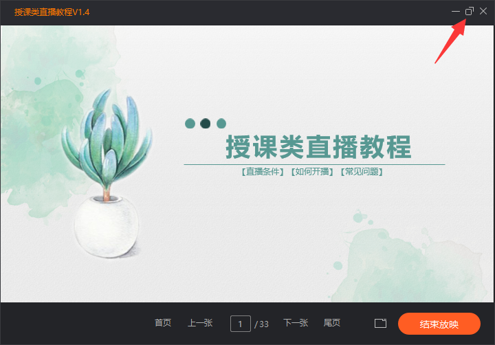 解决办法:点击“授课类直播教程”窗口右上角最大化图标,将窗口最大化。