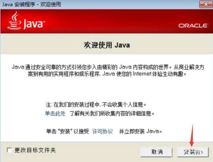 5、下载完成,会弹出JAVA的安装界面,点击“安装”按钮即可完成JAVA环境的安装,从而麦块我的世界盒子就能正常使用了。