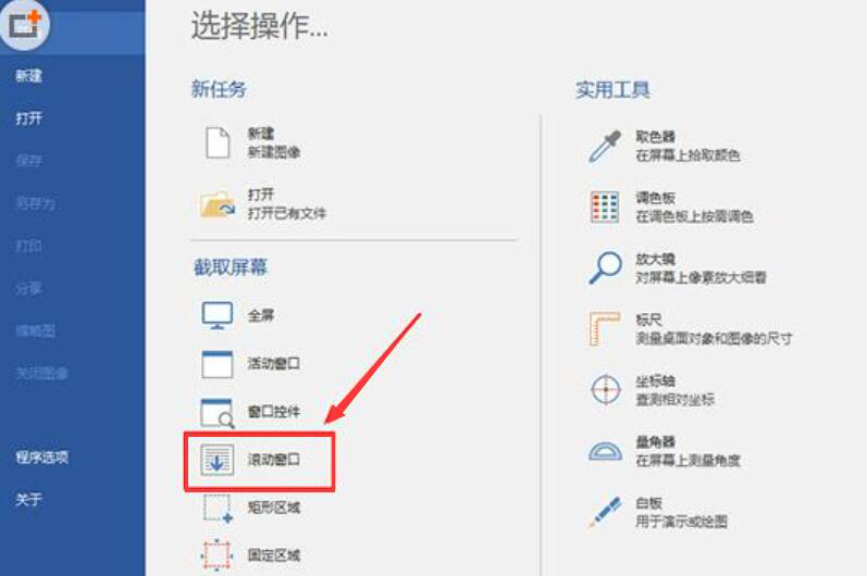 3、接下来,将PicPick图像编辑器打开,在其主界面中,点击“滚动窗口”,从而开启picpick滚动截图的功能。