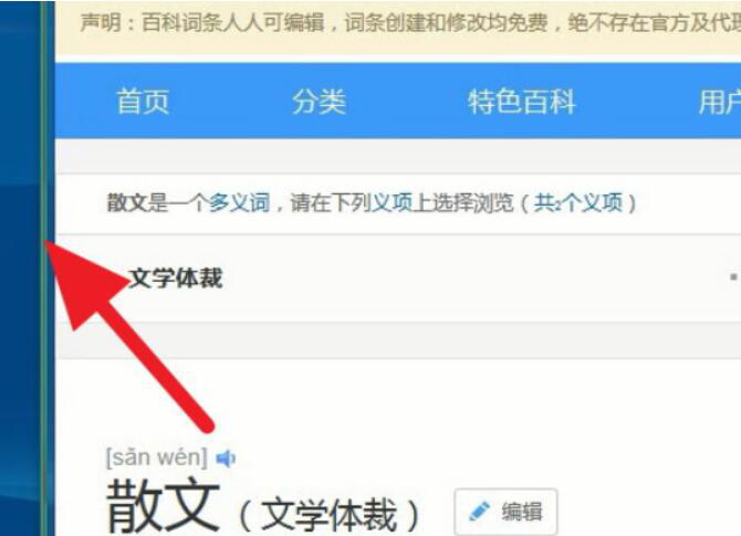 1、首先,用户打开自己需要全部截图的网页内容,例如我们是要将百度百科的散文资料内容全部截图。