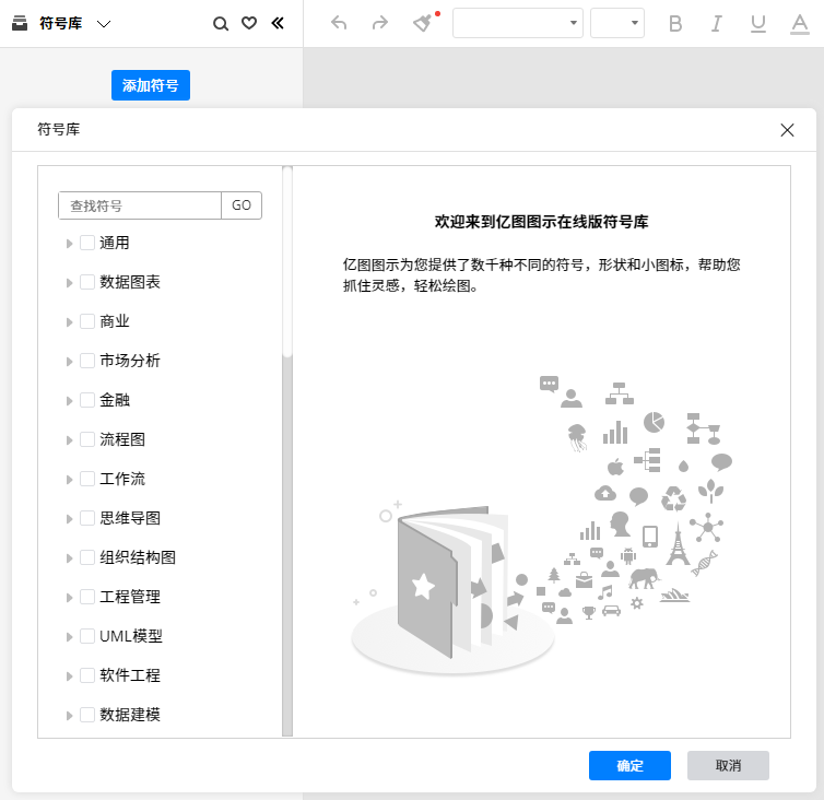4、选择左侧符号库,点击【添加符号】,在符号中选择特别的符号来使自己的贺卡与众不同。