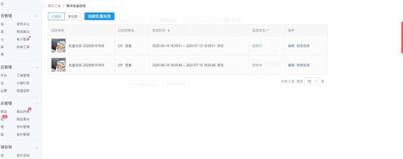 10、最后,用户可以回到商详批量投放的页面查看投放状态。审核通过,批量投放的图片或者文字便会出现在拼多多商详中了。