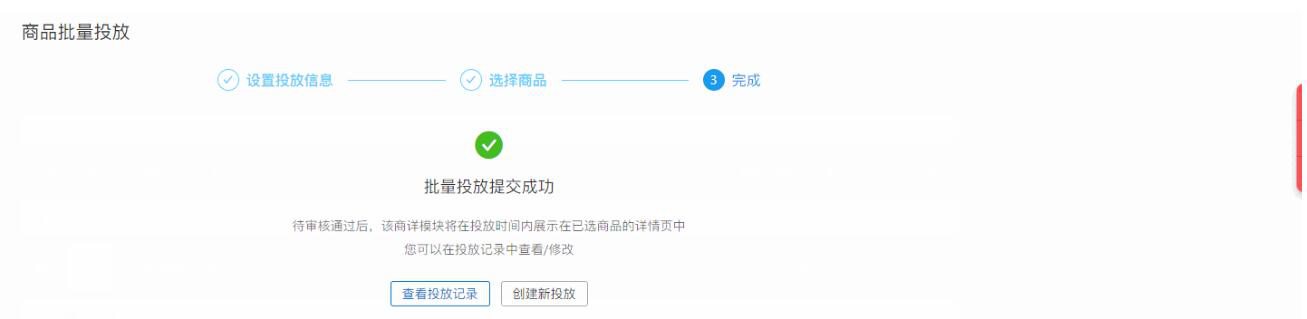 9、此时,便会弹出拼多多商详批量投放提交成功的提示。