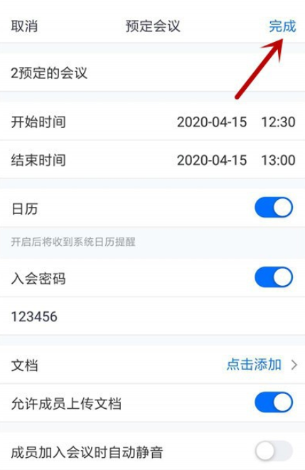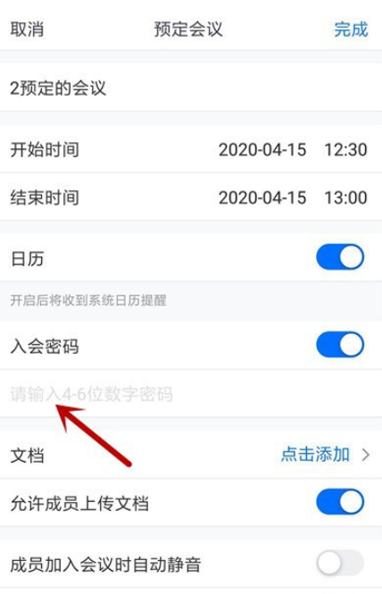 另外,如果你发起了预约会议,可以设置会议密码,不知道入密码的人就不能参与开会。