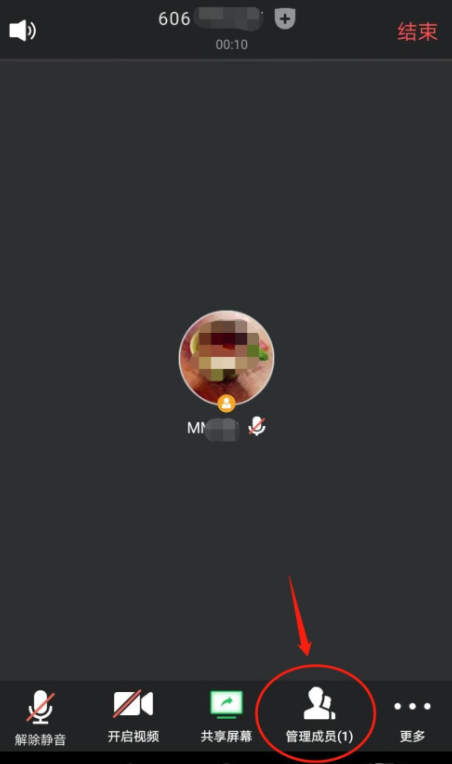 打开快速会议功能,进入窗口,如图,点击底部的【管理成员】按钮,