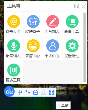 2、切换到百度输入法,点击百度输入法状态栏右侧的【工具箱】,在工具箱上拉菜单中点击【语音输入】。