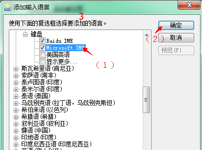 5、弹出“添加输入语言”选择一个键盘模式,比如 Microsoft IME,然后点击右侧【确定】。