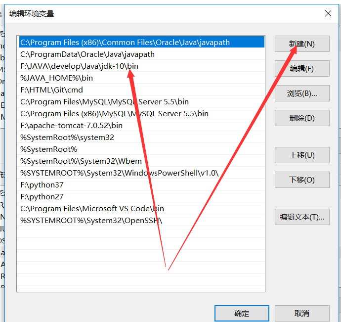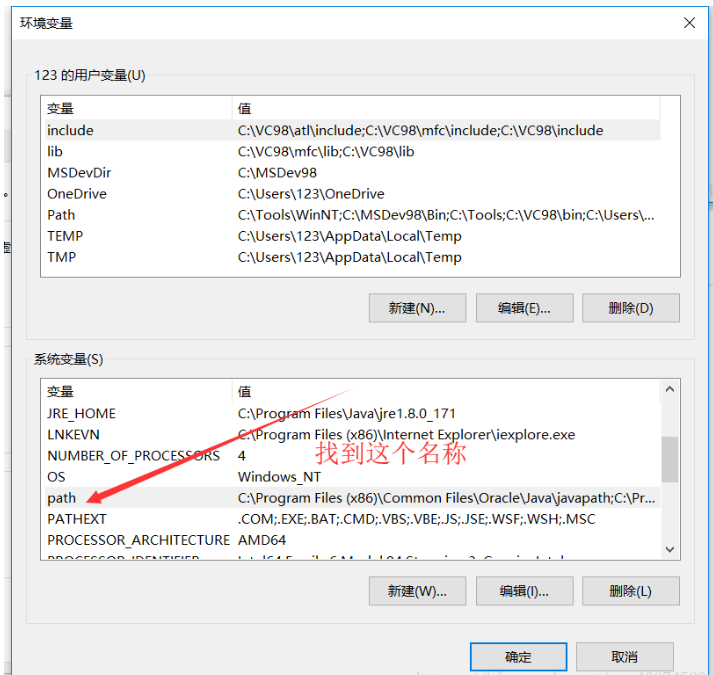 如图,在【系统变量】中找到【Path】,进行编辑,如果没有找到,点击新建,将刚刚复制的路径进行粘贴,然后点击确定,