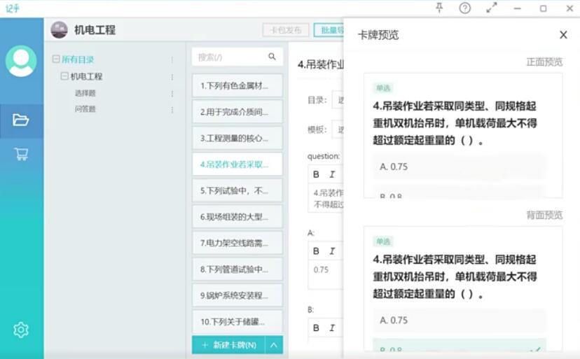 12、最后,用户在记乎便可以看到自己批量导入的Word,制卡成功。点击界面右侧的预览,便可以得到预览效果。