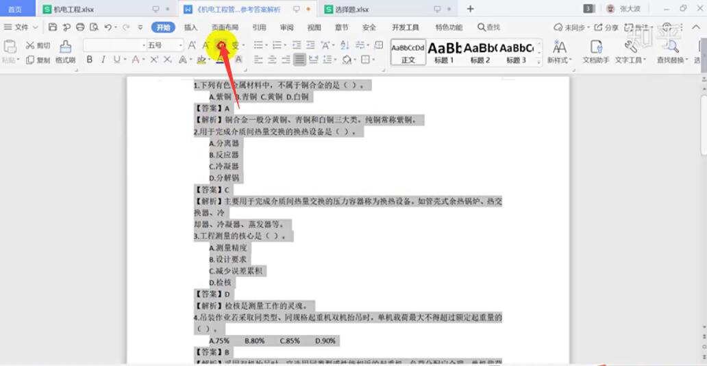3、Excel模板下载完成,将需要批量导入的Word文档打开,“Ctrl+A”全选文档内容,将文档格式清除,如图所示。