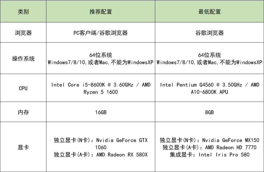 酷大师对于电脑配置要求如下图,对照一下你的电脑软硬件是否达到酷大师安装的最低配置标准:WIN7以上、64位系统、8G内存、谷歌浏览器。