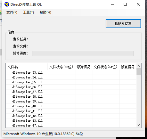 4).NET之类的程序安装完成后,我们重新点击【DirectX Repair.exe】,这时弹出“DirectX修复工具”窗口,点击窗口中的【检查并修复】。