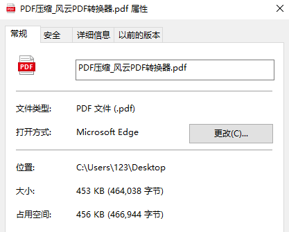 2)经过风云PDF转换器转换后文件大小453KB,压缩效果显著。