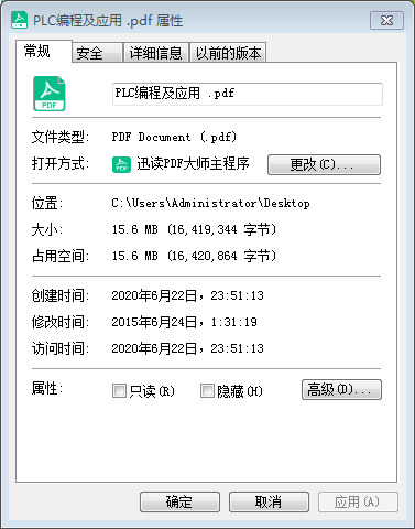 直接使用电脑上的压缩软件来对PDF进行压缩处理,这种方法的缺点在于压缩前后,体积变化不大。比如,名为“PLC编程及应用”的PDF文件压缩后体积由原来的15.6M减小为14.3M,压缩效果一般。