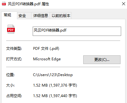 6、对比经过风云PDF转换器转换前后文件的大小。