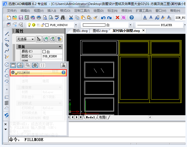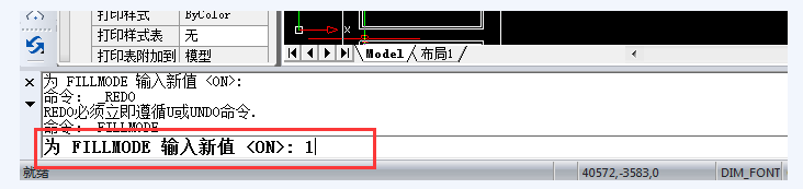 命令行出现系统提示【为FILLMODE输入新值 :】,此时输入1,按回车键,进行确认。
