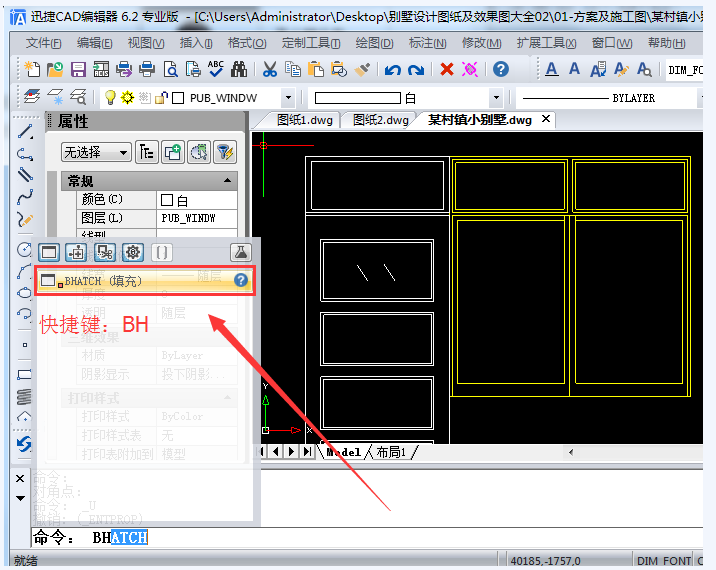 如图,激活“BH”命令,调出【图案填充和渐变色】对话框,