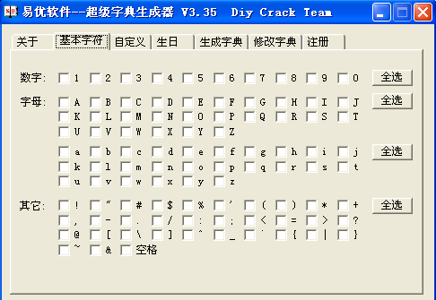 注意:如果全选,生成的密码词典会非常大,慎选。