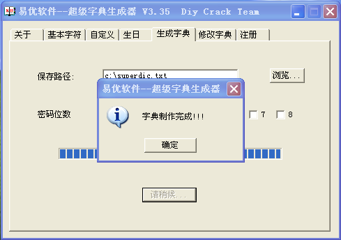 7、等待字典制作完成,然后点击【确定】。