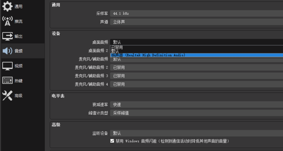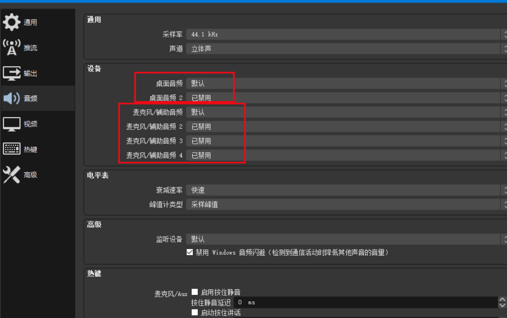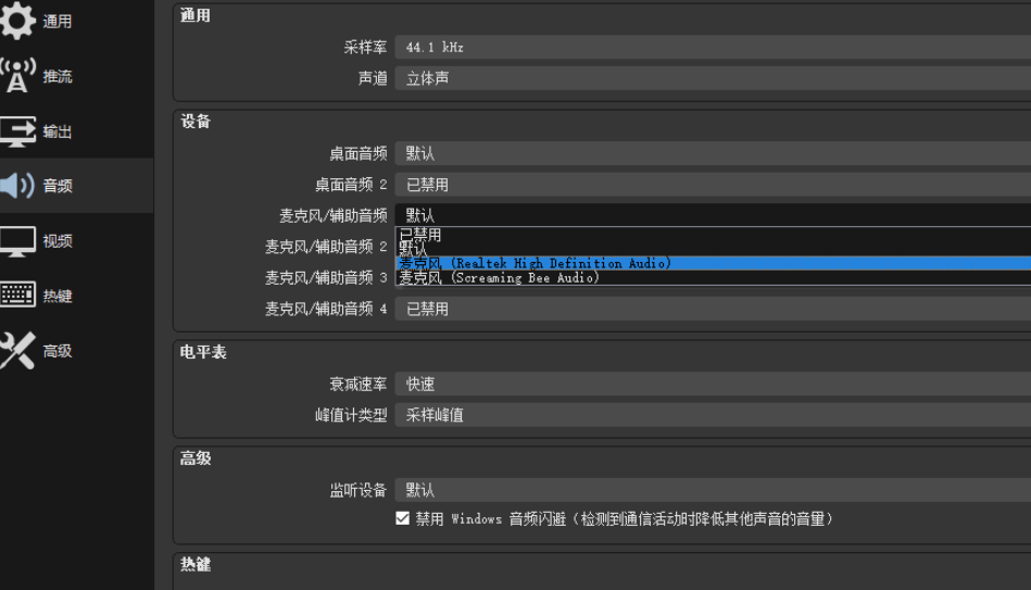 OBS录屏没有声音