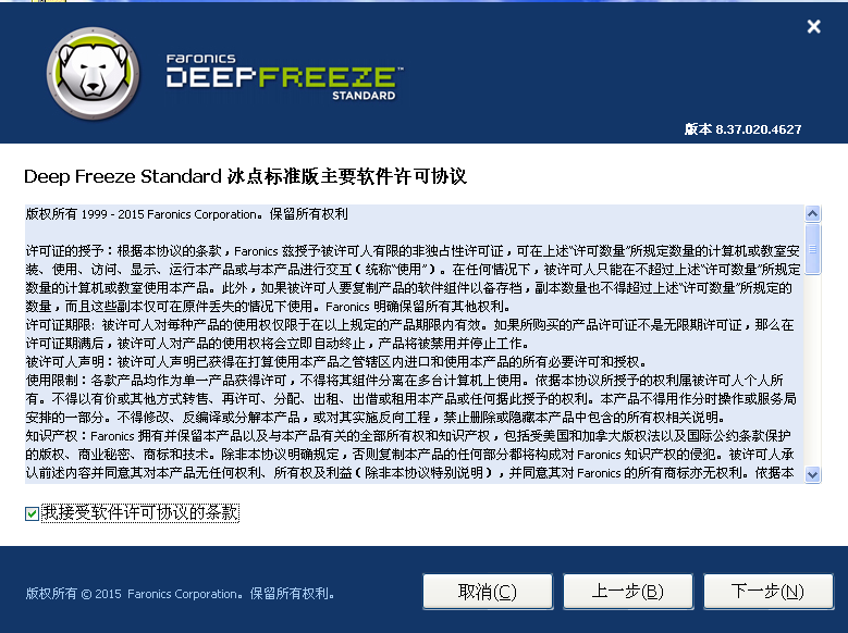 1、从网上下载冰点还原精灵并打开安装文件,然后点击【下一步】。