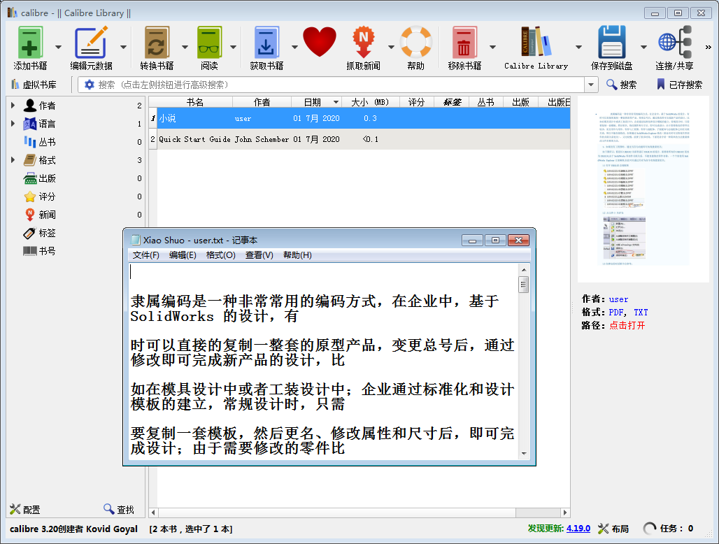 从互联网下资料是很多用户收集信息的主要方式,然而互联网上的很多资料文件格式不一,有些文件格式(比如PDF)还需要经过处理才能够进行复制和修改,因此找到一款能够简单快捷实现电子书转换的软件显得十分必要。Calibre是一款非常实用的开源免费电子书阅读器,用户不仅可以用它来观看和制作多种格式的小说,而且它格式转换的能力也非常强悍,支持epub、mobi、azw3、pdf、txt等几乎所有常用格式的文件查看和格式转换。下面我们就以PDF格式文件转化TXT格式为例,来介绍Calibre转换格式的方法。