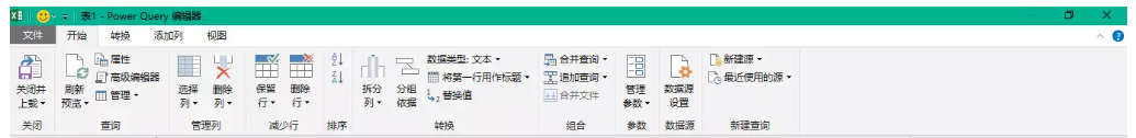 查看Power Query编辑器主界面,如图,对比Excel,工具栏按钮并不是很多,每个功能相对比较容易理解。