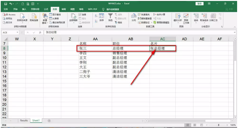 打开一个Excel工作簿,如图,我需要利用表格中的数据来制作个名片,简单来说,就是合并单元格内容,