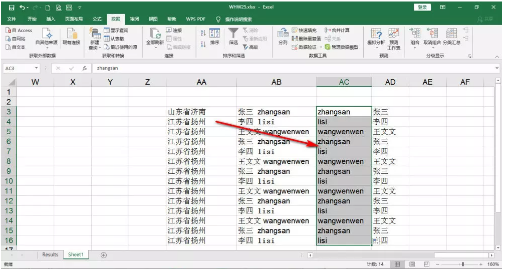 当然了,由于数据存在特殊性,我们在使用快速填充命令的时候可能会出现错误,下面简单举例说明。