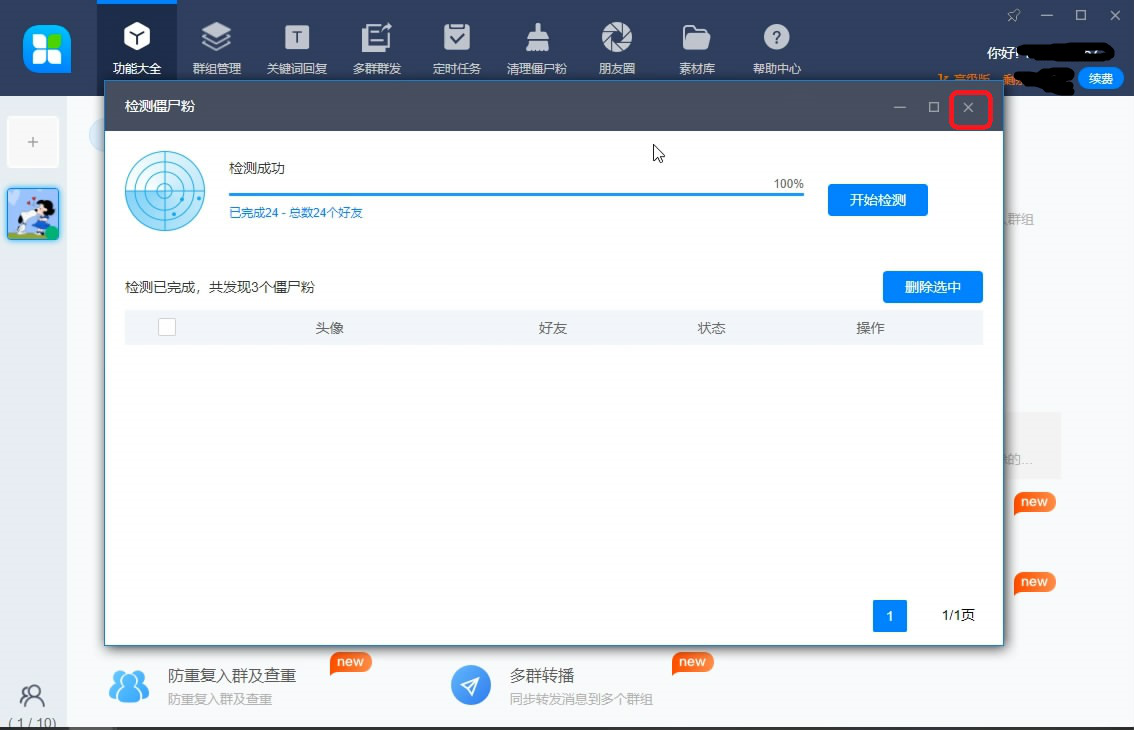 7、僵尸粉清理完成,点击关闭窗口即可。