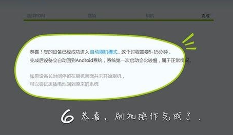 6、接下来设备进入自动刷机模式,需要5-15分钟,这个是根据手机的性能来决定的,刷机完成后提示成功,界面如下图所示。