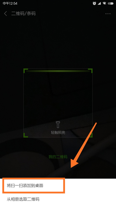 出现两个选项,点击【将扫一扫添加到桌面】,以后就可以从手机桌面直接打开微信扫一扫功能即可。