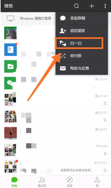 点击打开扫一扫功能,进入扫描窗口,然后点击右上角的菜单,