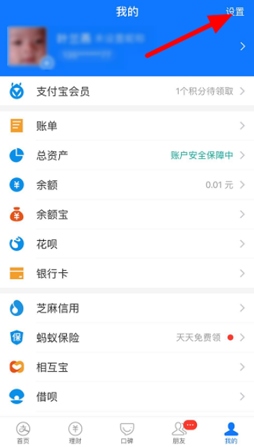 打开手机支付宝(本教程使用的是iPhone手机),进入首页,点击下方【我的】,在个人中心点击【设置】选项,